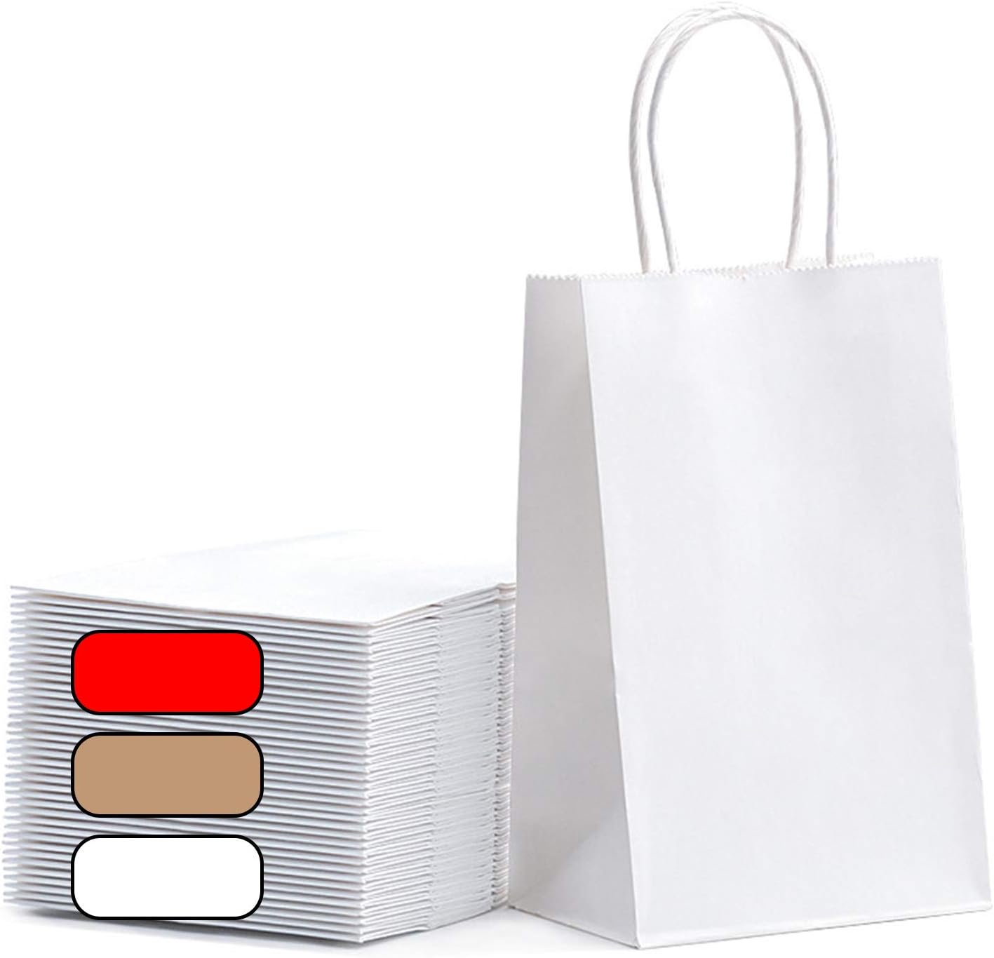 Quanyong 50Pcs White Kraft Paper Bags 5.25 x3.75 x8 inchs Gift Bags Bulk with Handles for Shopping, Packaging, Retail, Party, Gifts, Wedding, Recycled, Business, Goody and Merchandise